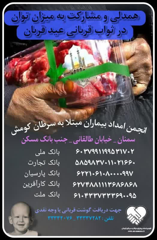 انجمن امداد بیماران سرطانی کومش سمنان یک موسسه خیریه است که در جهت حمایت از بیماران سرطانی نیازمند که از انگیزه والای خدمت به همنوع سرچشمه گرفته و توجه خود را معطوف به بیماران مبتلا به سرطان کودکان و بزرگسالان استان سمنان نموده است و در حوزه های جذب حامی و امور خیریه ، مراقبت و پیشگیری از این بیماری فعالیت می کند. ما با اطلاع رسانی و برنامه ریزی در حوزه آموزش های پیشگیرانه می کوشیم تا در کاهش نرخ ابتلا به سرطان در ایران خصوصا استان سمنان مشارکت داشته باشیم . این موسسه خیریه ، غیرانتفاعی ، غیر سیاسی و غیر دولتی است که در این موسسه در کنار یکدیگر برای تحقق اهداف خود تلاش می کنیم و دستان پر مهر شما حامیان و همراهان مهربان خود را گرم می فشاریم و حضور گرم شما در میان جمع خود استقبال می کنیم .